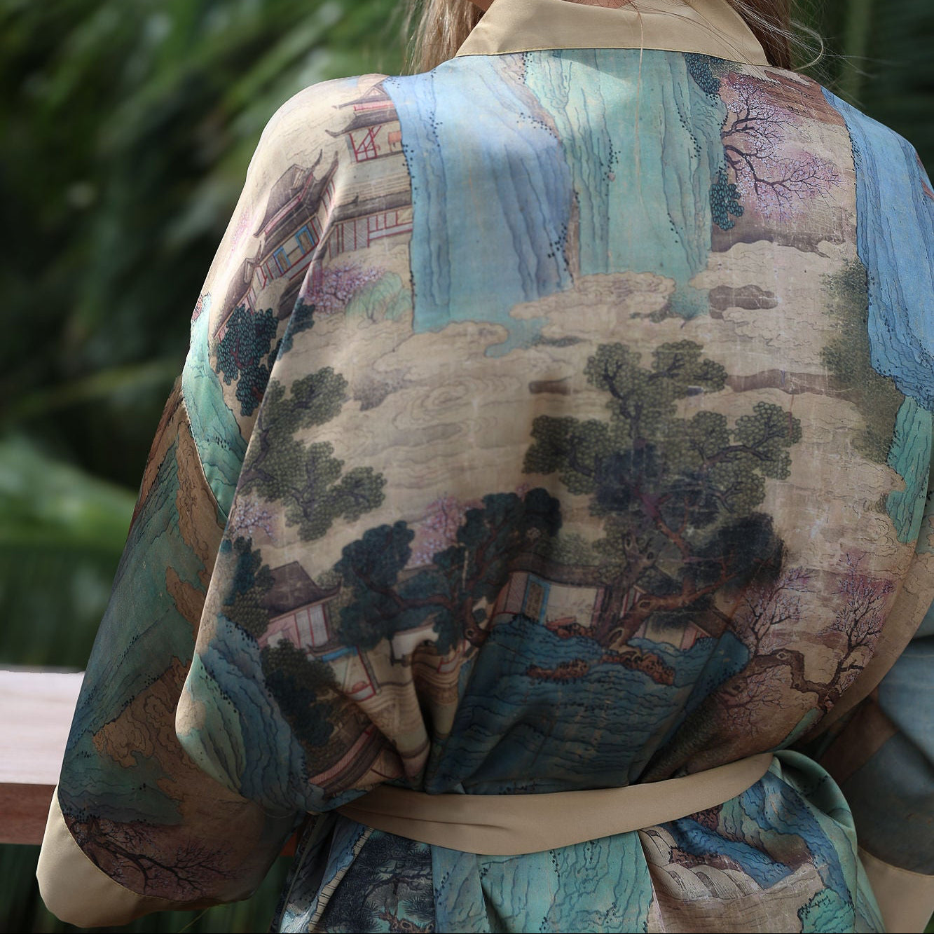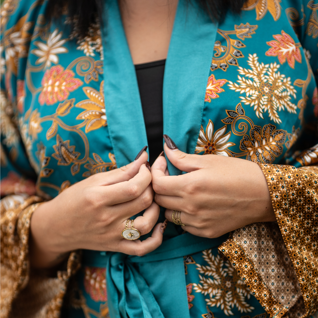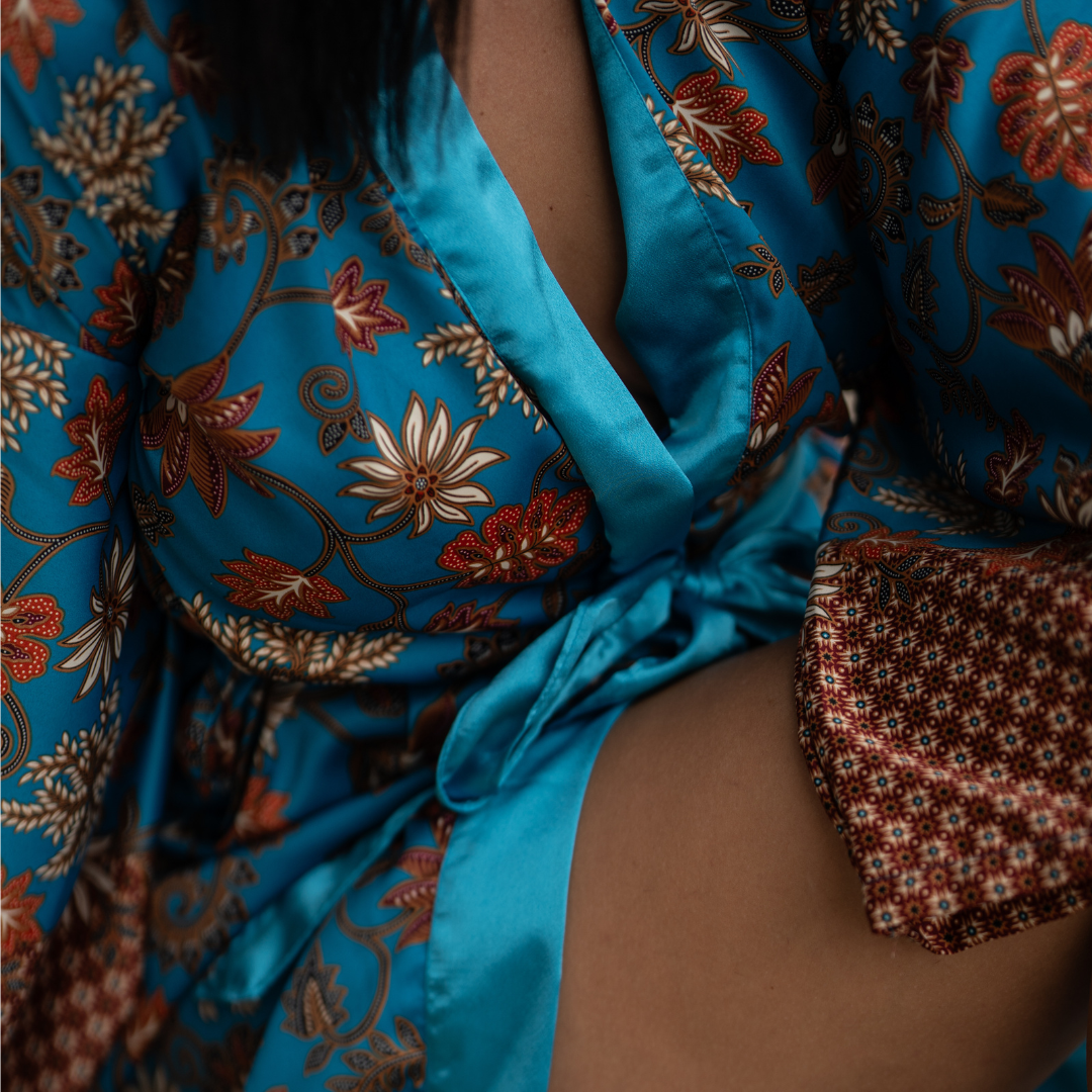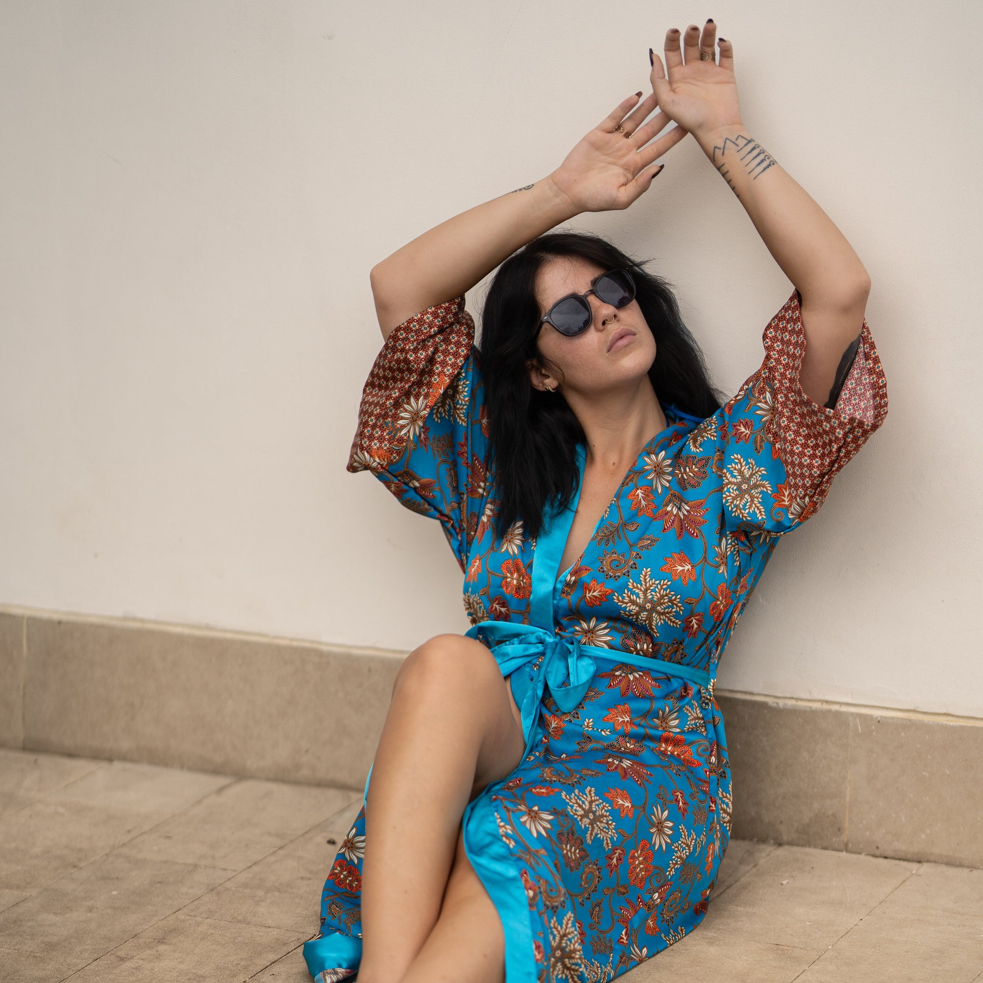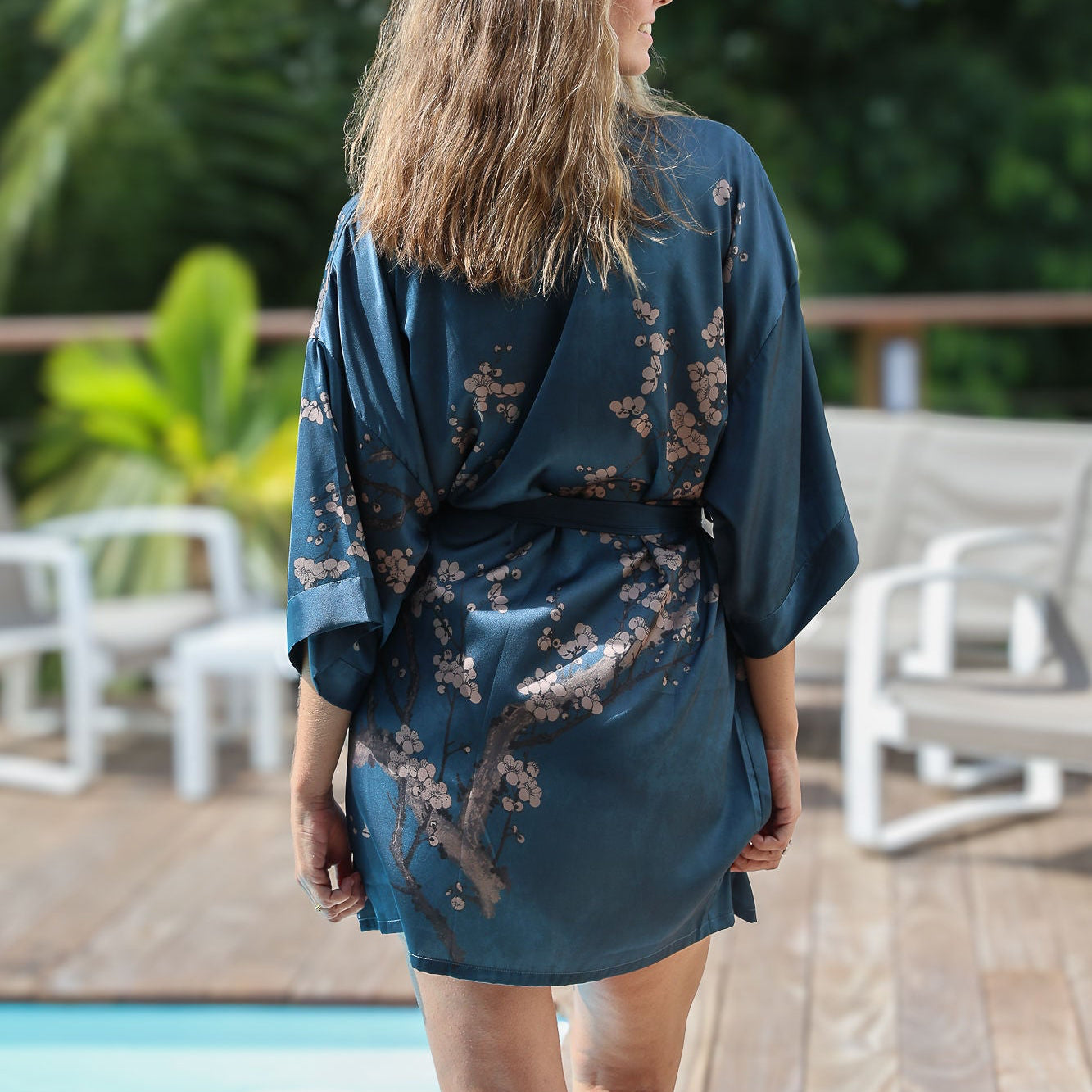 Fini le gilet banal ou la robe de chambre encombrante ! Avec les Kimonos Amboria restez élégante du coucher au lever. Fluide et aérien, il se porte facilement sur un pyjama ou une nuisette, pour une allure sophistiquée même à la maison.