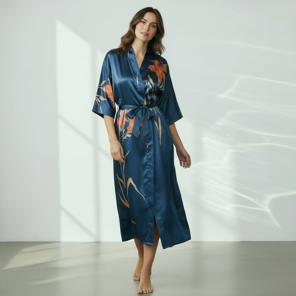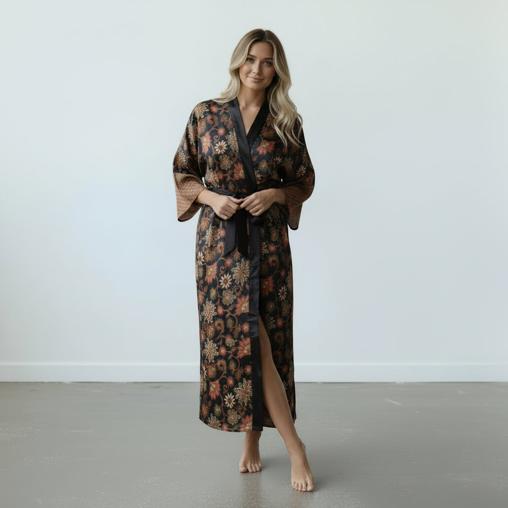 L'engagement Amboria s'étend bien au-delà du vêtement. La marque s'inscrit dans une démarche de création responsable, privilégiant les matières naturelles et les savoir-faire artisanaux. Chaque kimono est le fruit d'un processus minutieux : le choix de la soie ou du satin, la sélection des motifs, l'ajustement de la coupe pour garantir un tombé parfait sur toutes les morphologies. C'est cette attention portée à chaque détail qui fait d'Amboria bien plus qu'une marque de mode — c'est une Maison, un refuge d'élégance où chaque femme peut se sentir chez elle.