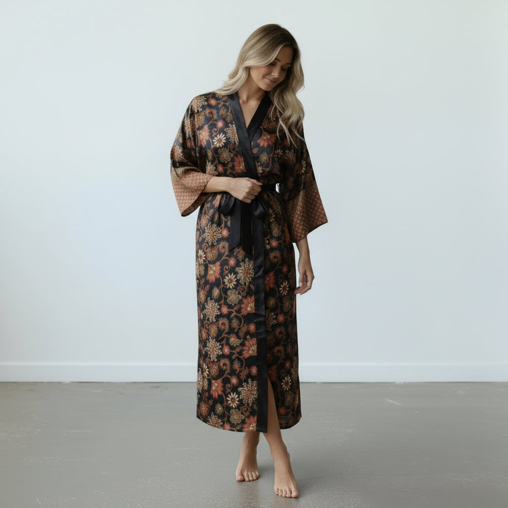 Le kimono est un vêtement japonais qui traverse les siècles sans jamais perdre son souffle. Du kosode ancestral aux créations contemporaines, il incarne une élégance naturelle où chaque tissu, chaque motif raconte une histoire. Amboria réinvente cet héritage pour les femmes d'aujourd'hui : des kimonos en soie et en satin, pensés pour sublimer chaque silhouette avec douceur et simplicité.