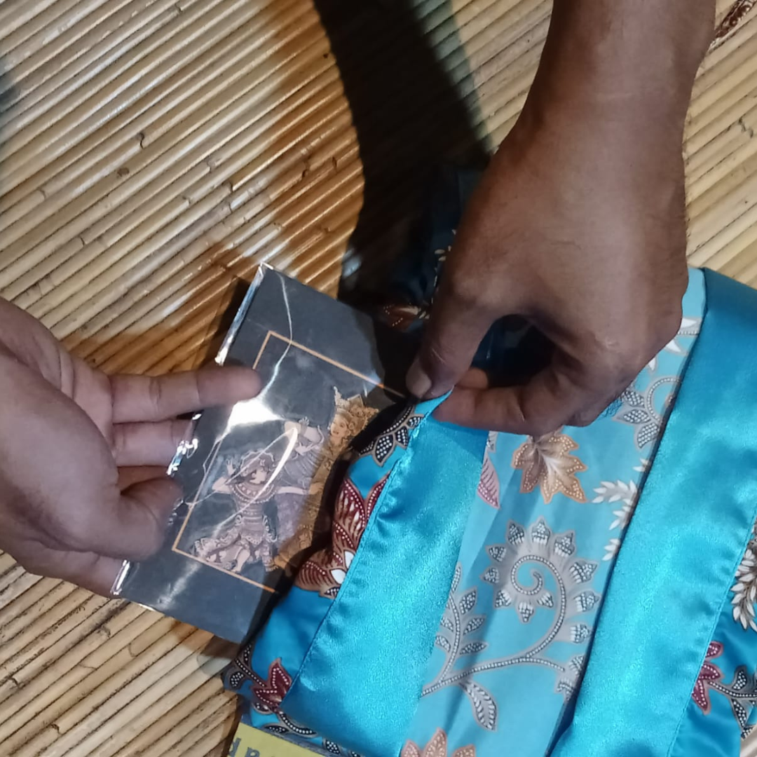 Les manches arborent un design typique de la culture balinaise, symbole d’héritage et de raffinement.