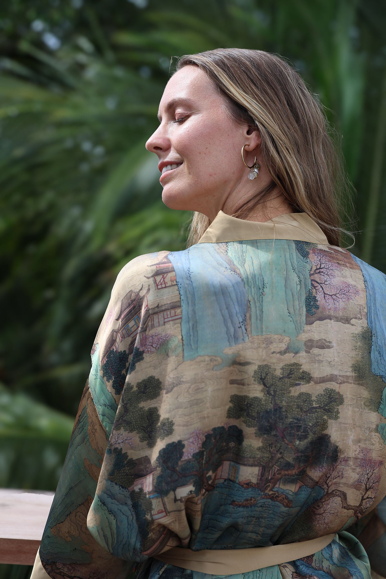 Angie - Rêve de Dunes : Kimono en satin, court et élégant