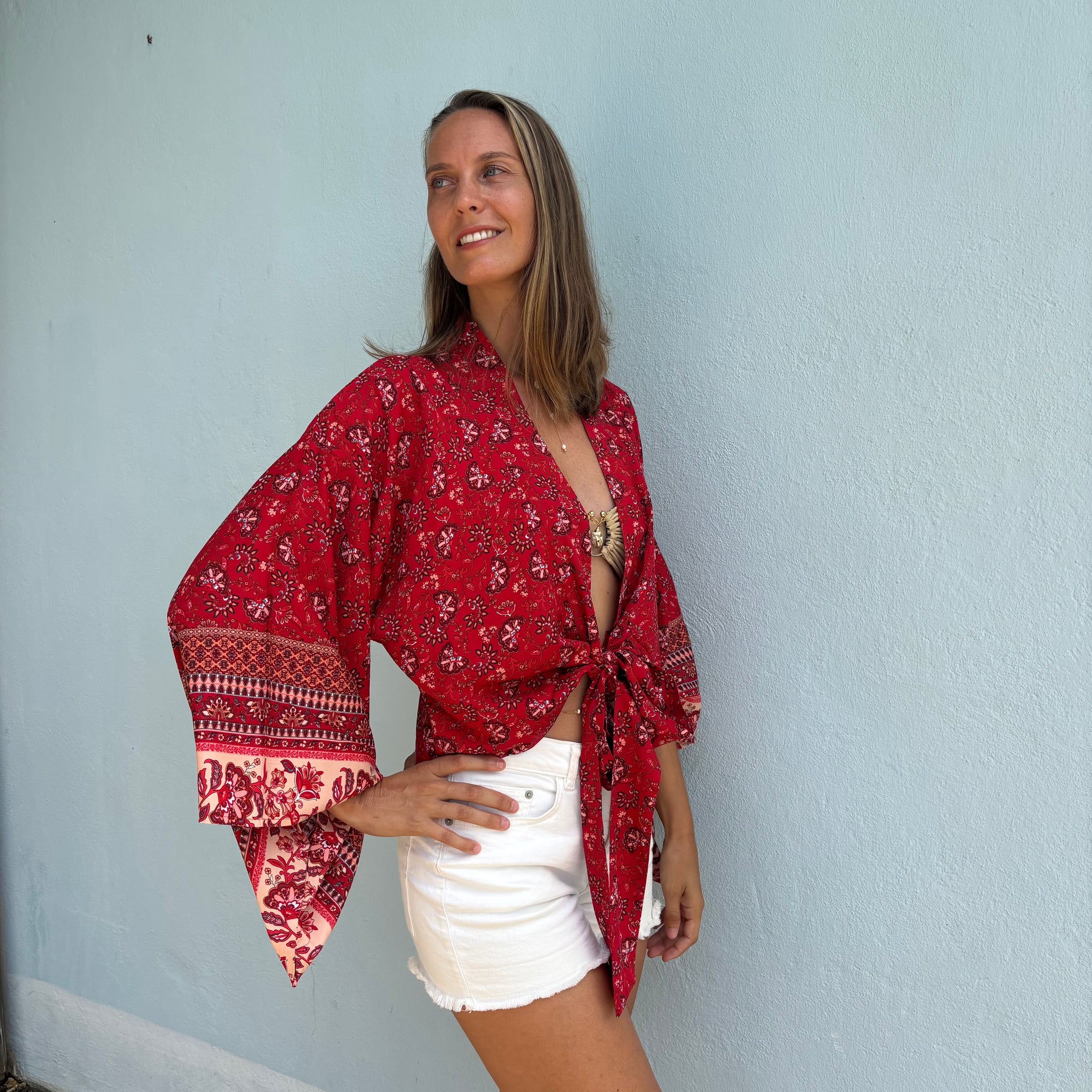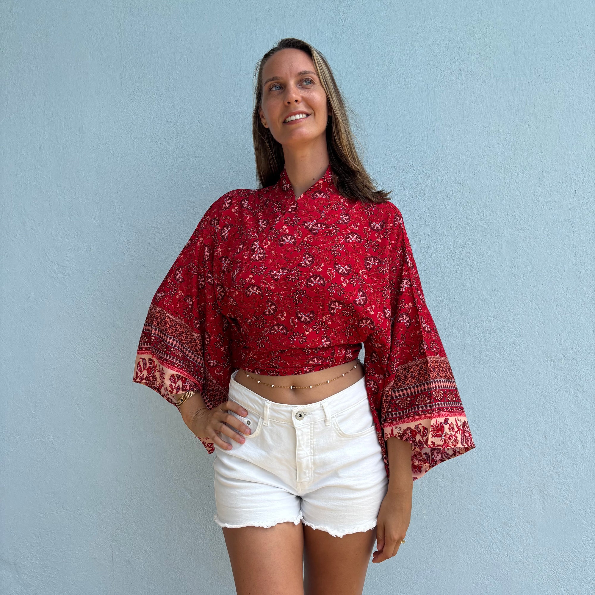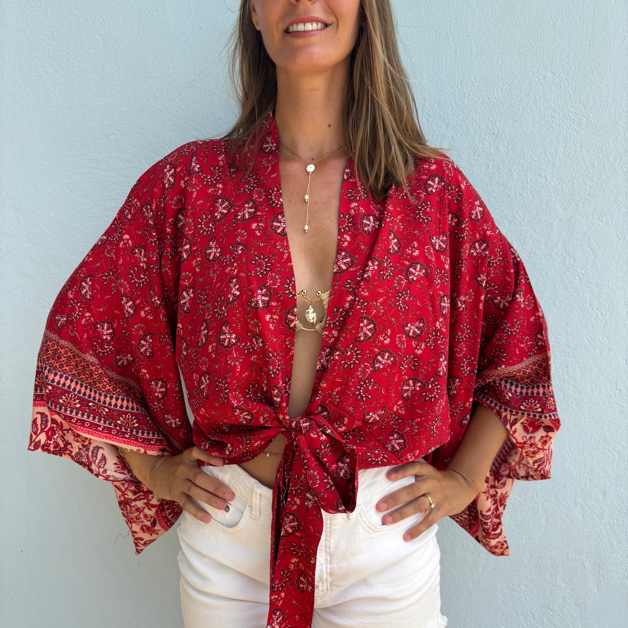 Giulia – Rouge framboise : Kimono court d’été, léger et élégant